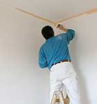 An dieser Kellerwand hatte ein kaputtes Fenster Wasser in die Innenwand eindringen lassen.